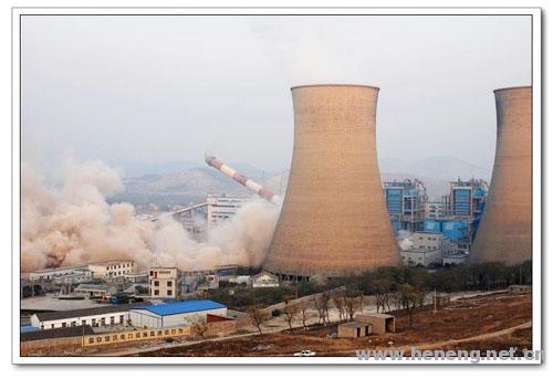 下午4时30分,爆破总指挥发出命令,“各警戒点、点火站注意,下面进入倒计时,5、4、3、2、1,起爆”,随着三声沉闷巨响,16秒钟,两座110米高的冷却塔和210米高的烟囱轰然倒地,现场技术统计,这次爆破震动、飞石等都控制在规定范围内,各种爆破参数完全达到预期效果。爆破点附近厂房安然无恙,7号、8号机组正常运行,京沪铁路正常通车。 至此爆破领域又增添了两项新纪录,烟囱和冷却塔双双创下了爆破高度之最。