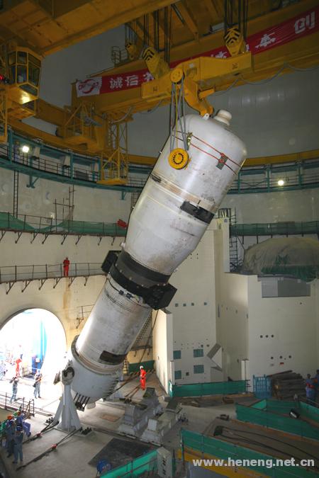 8月3日13时58分,秦山二核扩建工程首台蒸汽发生器稳稳地矗立在了3号反应堆内,标志着秦山二核扩建工程核岛主设备安装工作正式开始。