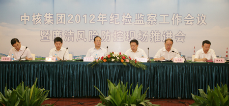 “廉洁风险防控管理是惩防体系建设的重要内容,也是一项全新的工作。各级纪检监察部门要把领导带头,落实责任放在首位,把广泛动员,全员参与作为基础,把重点领域,关键环节贯穿始终,用监督检查,考核评价检验实效,全面推进廉洁风险防控管理工作开展。” 中核集团党组成员、纪检组组长李学东在7月26日至27日召开的2012年纪检监察工作会议暨廉洁风险防控现场推进会上如此强调。该会议传达了中央纪委领导讲话精神,总结上半年纪检监察工作,研究下半年重点工作,并就廉洁风险防控专题进行了现场培训和经验推广。