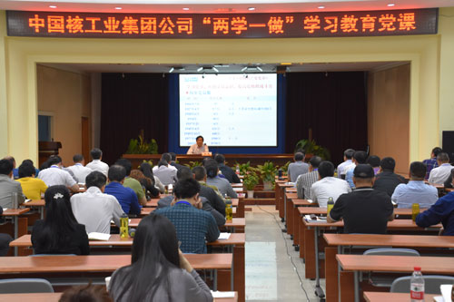 集团公司党群工作部主任张昌明主持党课学习。集团公司人力资源部主任王安民、2016年集团公司党组管理干部能力提升专题研修班学员、中央党校国资委分校核工业党校2016年春季处级干部进修班学员、核工业管理干部学院班子成员及全体党员参加了学习。(李唯)