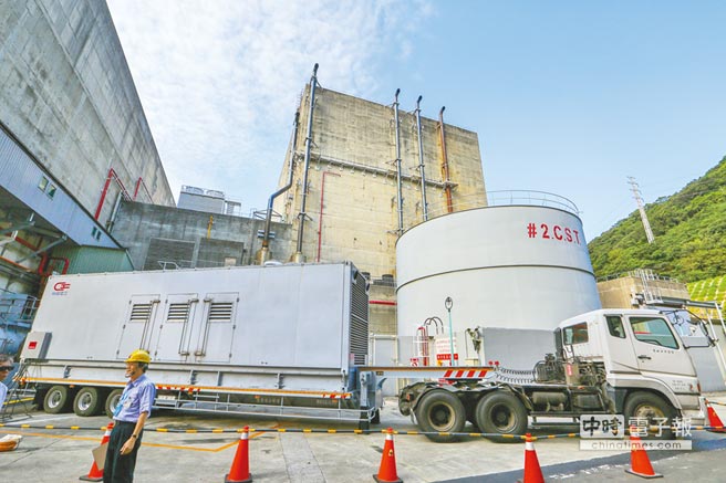 入夏高温引爆缺电危机,停机17个月的核一厂1号机是否重新启动,备受关注。图为去年核一厂模拟电源中断后紧急供电。(本报资料照片)