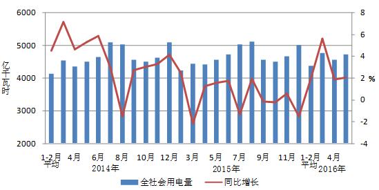 1-5月份,全国全社会用电量22824亿千瓦时,同比增长2.7%,增速比上年同期提高1.7个百分点。