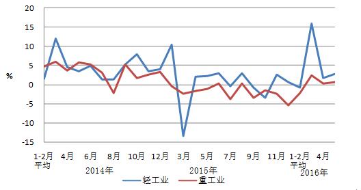 图2: 2014年以来分月轻、重工业用电量增速情况