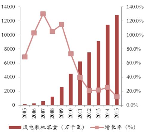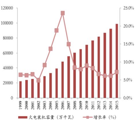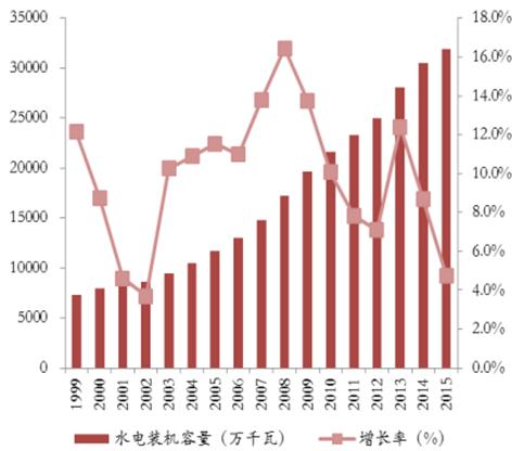 进入二十一世纪以来,我国电力装机得到飞速的发展,装机容量直线上升。火电增长了 4.5 倍,水电增长了 4.3 倍,风电和光伏更是从无到有,快速发展。认识上也是逐步提升,由粗放式的比装机,到比装机结构,可再生能源的比例不断增大。但是青春期毕竟只是一个阶段而已。进入 2013 年以来,总用电量增速开始放缓,2015年用电更是出现了负增长。而从装机增速上看,火电和水电的增速分别在 2006 年和 2008 年达到顶峰,随后增速开始放缓。