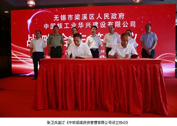 签约仪式上,张卫兵与梁溪城投董事长李先光共同签署《中核梁溪投资管理有限公司设立协议》,双方将以建立中央企业与地方政府合作新模式为出发点,建立资源共享、战略互惠、长期合作的伙伴关系,依托现有产融结合平台,整合内外部优势资源力量,重点在棚户区改造、基础设施建设等领域,加快推进有关项目落地,推动双方合作结出硕果。