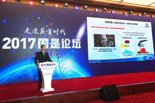 9月21日,由国务院参事室、国家质检总局联合主办,新华网承办,以“走进质量时代”为主题的“2017国是论坛”在北京举行。受论坛邀请,中核集团总经理、党组副书记钱智民做了题为“建设核强国,引领世界核工业高质量发展”的主旨演讲。