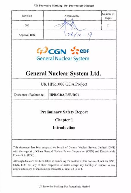 华龙一号通用设计审查初步安全报告正式提交英国审管当局