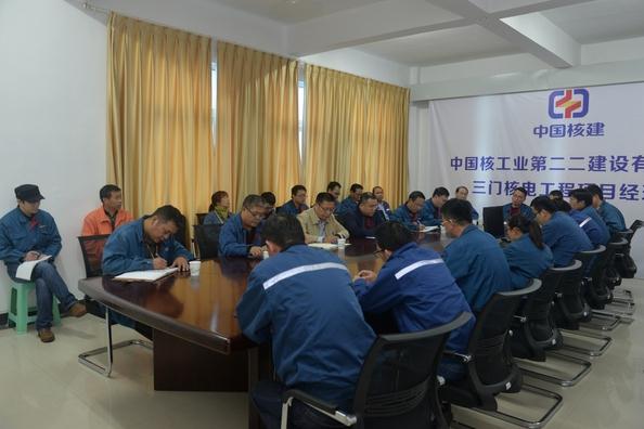 11月28日、29日,中核二二公司副总经理、总工程师杨振勋,总经理助理、核电管理中心副总经理王洪彪一行到三门项目部调研指导工作,与项目部中层以上管理人员进行了座谈。