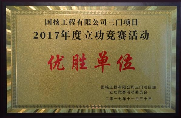 12月6日,在国核工程有限公司三门项目2017年度立功竞赛表彰大会上,中核二二公司三门项目部被国核工程有限公司三门项目部立功竞赛活动委员会授予“2017年度立功竞赛活动优胜单位” 称号。