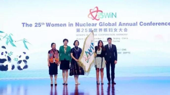 第25届世界核妇女大会会旗交给本届举办国——阿根廷(来源:国家核电)
