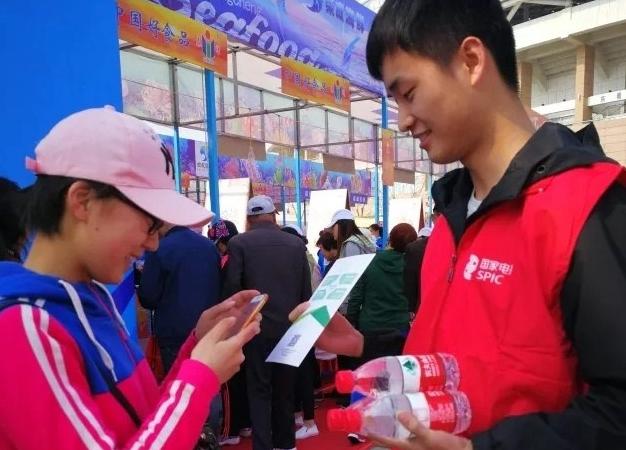 借荣成马拉松比赛向市民宣传核电知识(摄影:祝华伟)