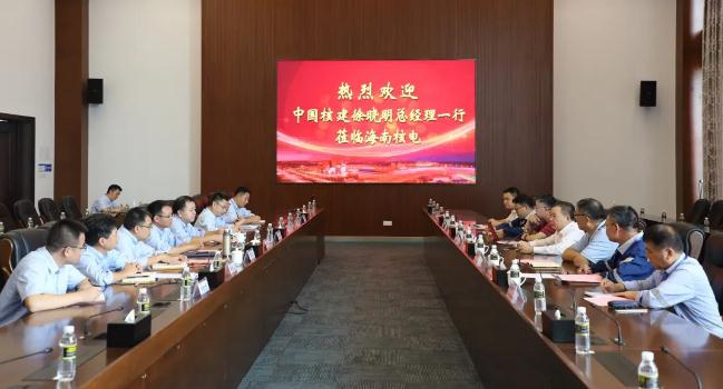 10月14日,中国核建总经理、党委副书记徐晓明一行到海南昌江核电现场,与海南核电有限公司董事长、党委书记魏国良,总经理、党委副书记卢铁忠以及各参建单位负责人等进行了座谈。