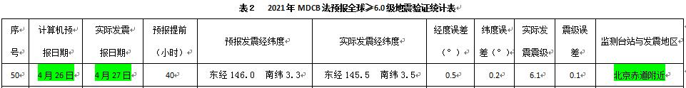 2021年MDCB法预报全球≥6.0级、国内≥4.5级地震情况说明