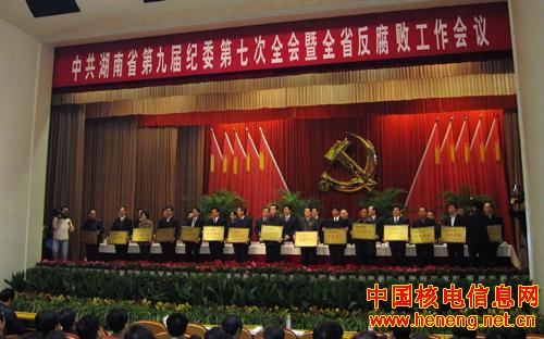 1月19日,中共湖南省第九届纪委第七次全会暨全省反腐败工作会议在长召开,省委书记张春贤作重要讲话,省委副书记、省长周强主持会议,省委常委、省纪委书记许云昭总结2009年全省党风廉政建设和反腐败工作,部署2010年反腐倡廉任务,会议表彰了先进,湖南省核工业地质局被授予“2009年度反腐倡廉建设先进单位”称号。