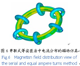 对串联式等安匝法中串联电流分布(按均匀绕制分布方式建模)所形成磁场分布进行仿真如图6,