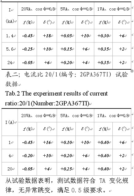 表一;电流比28000/1(编号:2GPA107TI与2GPA367TI级联)试验数据