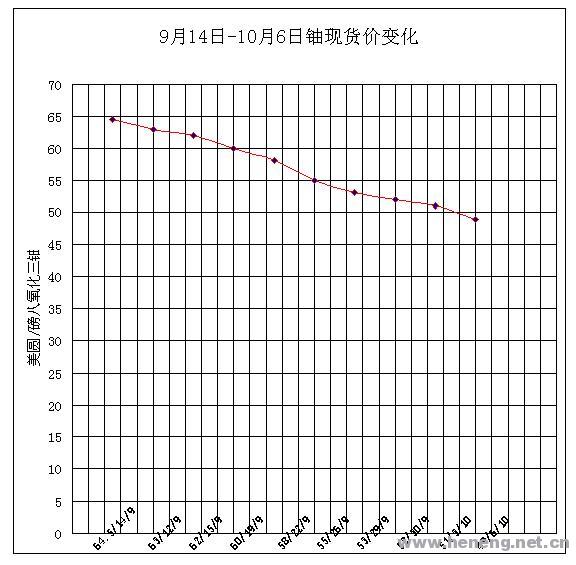 1.国际铀现货价跌穿50美元大关,10月6日报收于每磅八氧化三铀49美元