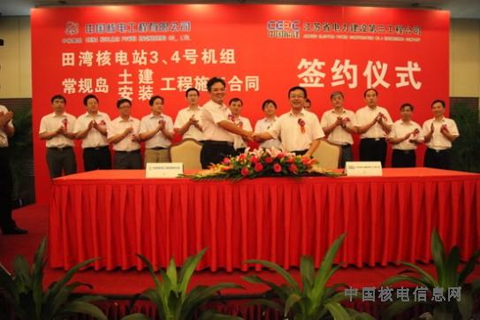 在8月6日于北京举行的合同签约仪式上,江苏电建三公司与中国核电工程有限公司签订了《田湾核电站3、4号机组常规岛土建、安装工程合同》,中国能建总经济师周小能和中核集团总经理助理李晓明出席签字仪式。