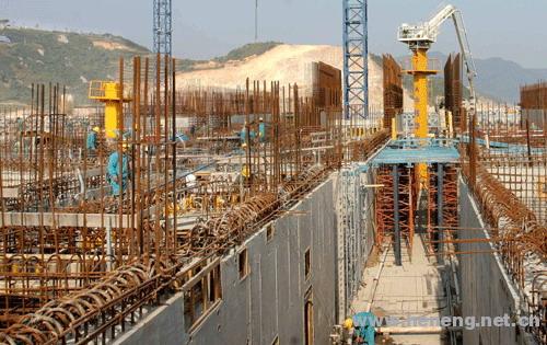 宁德核电站自二○○八年二月十八日正式开工以来,工程建设进展顺利,一、二号机组全部进入了主体土建施工阶段。核岛、常规岛的混凝土浇注正在紧张施工中。目前,反应堆厂房已施工到零米,核辅助厂房已施工到五点七米,该工程已累计投资达三十五亿元。(记者 董建鸣 摄)