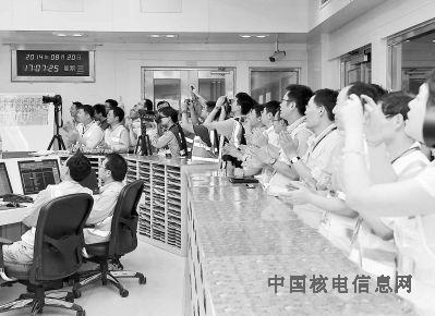 20日下午,福清核电站1号机组首次并网发电成功,技术人员鼓掌见证历史时刻。本报记者 游庆辉 摄