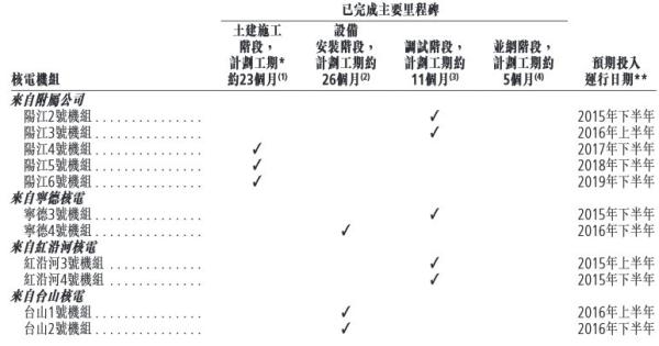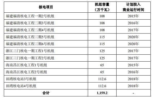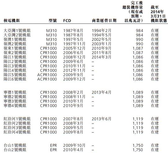 (注:上述在建项目中,宁德2号机组于2014年5月4日投入商业运行,红沿河2号机组于2014年5月13日投入商业运行。)