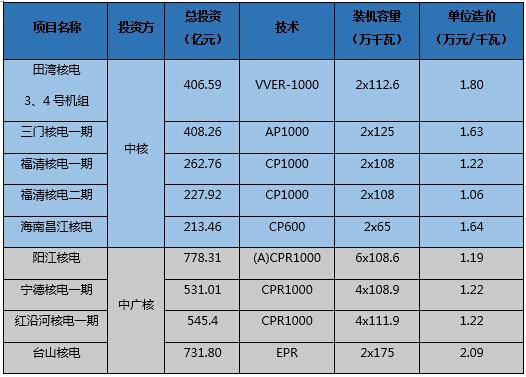 而中广核电力方面,引进法国三代核电技术EPR的台山核电单位造价高于平均水平。