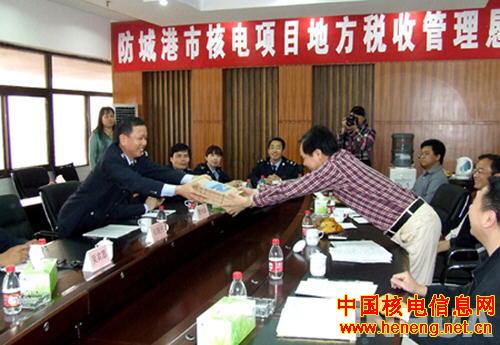 结合自治区地税局开展“纳税服务年”活动和税收宣传月活动的统一部署和要求, 4月9日,防城港市地税局组织召开“广西一号”工程防城港市红沙核电项目地方税收管理恳谈会,向企业介绍地税部门为服务大项目建设所采取的主要措施和作法,并就如何做好下一步地方税务工作充分征求对方的意见和建议。双方单位负责人、分管领导、业务部门负责人、港口区地税局有关人员等参加了座谈。