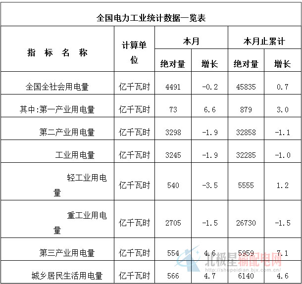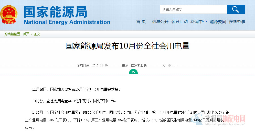 从国家能源局网站获悉,国家能源局今日发布了10月份全社会用电量,同比下降0.2%
