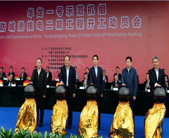 2015年12月24日上午,随着中国广核集团防城港核电站3号机组浇筑第一罐混凝土,华龙一号(HPR1000)示范机组——防城港核电二期工程正式开工建设。防城港3、4号机组是英国布拉德韦尔B项目的参考电站,防城港二期工程的开工将为华龙一号走向国际市场奠定关键基础。