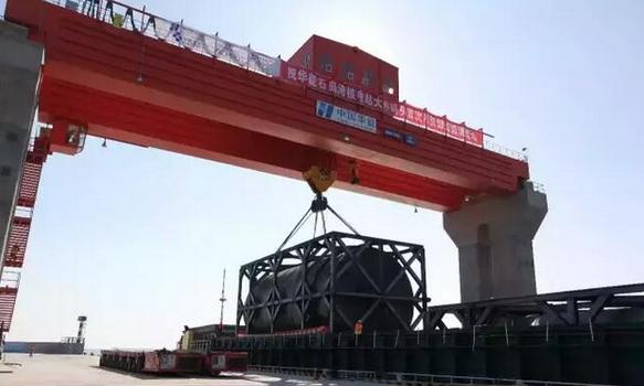 大件设备运输码头是5000吨级码头,设有650吨固定桥式起重机,可满足石岛湾核电基地大件设备运输的要求。此次吊装的高温堆示范工程2台余热排出系统水冷壁设备,在低潮位条件下才可作业,公司组织安全质保部、工程部、设计采购二部、技术支持部、行政保卫部等相关部门全力配合,在安全保障、设备卸船、场内运输、气象环境等方面开展了大量准备工作,组织了多次演练,确保了首次吊装作业的顺利完成,为高温堆示范工程主要设备压力容器、蒸发器等的吊装奠定了坚实基础。