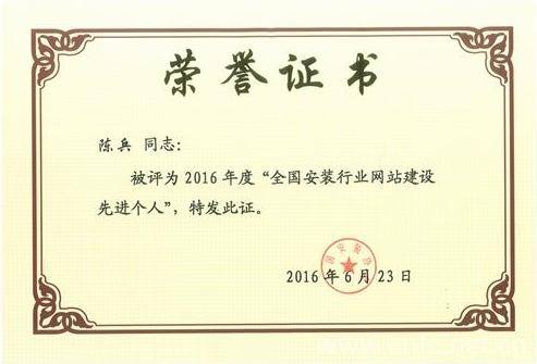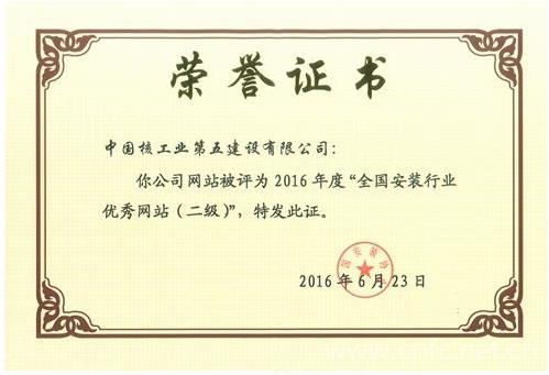 中核五公司获得了2016年度全国安装行业二级优秀网站和2016年度全国安装行业网站建设先进个人称号两个奖项。