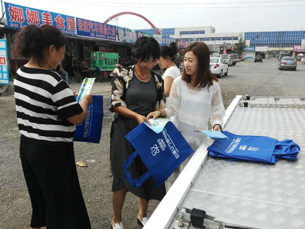 7月8日,辽宁核电科普大篷车来到兴城市东辛庄镇,为镇上来赶集的百姓送来了核电科普知识。