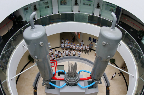8月7日,来自西藏聂拉木县的藏族学生在山东核电科技馆观看核岛内部结构模型。当日,10名来自西藏聂拉木县的藏族学生来到位于烟台的山东核电科技馆,了解核电科技,探寻核能奥秘。据了解,西藏聂拉木县是山东省烟台市的对口支援单位,经过烟台市第八批援藏干部的牵线组织,这10名藏族学生从8月6日起开始在烟台进行为期一周的交流学习。新华社发(唐克 摄)