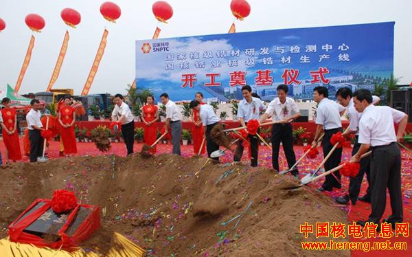 2009年8月8日上午,“国家核级锆材研发与检测中心暨国核锆业核级锆材生产线”项目开工奠基仪式在陕西省宝鸡市高新技术开发区隆重举行。陕西省人民政府副省长姚引良出席开工仪式,并宣布“国家核级锆材研发与检测中心暨国核锆业核级锆材生产线”项目开工建设。“国家核电”党组书记、董事长王炳华,宝鸡市委书记唐俊昌,国家国防科工局系统工程二司司长董保同出席开工仪式并发表讲话。出席开工仪式的主要领导最后一起挥锹铲土,共同为“国家核级锆材研发与检测中心暨国核锆业核级锆材生产线”项目奠基。开工奠基仪式由“国家核电”党组成员、副总经理吕华祥主持。“国家核级锆材研发与检测中心、国核锆业核级锆材生产线”项目的开工建设,是我国核能发展进程中具有里程碑意义的重要事件,是我国核电产业战略性布局中不可或缺的一个重要环节。它的按期建成投产,将为填补我国核级锆材生产的空白,全面提升核电产业的技术装备水平,形成具有自主知识产权的核用锆合金品牌,促进国家能源结构调整战略和核电中长期发展规划的顺利实施提供强有力的支撑和保障。出席“国家核级锆材研发与检测中心、国核锆业核级锆材生产线”项目开工奠基仪式的还有,国家相关部委,陕西省政府有关部门,宝鸡市市委、市政府及有关部门,以及项目投资方、用户方、设计单位、施工企业、监理公司的领导或嘉宾。中央、地方等九家媒体的记者参与了项目开工奠基仪式的全程报道。当晚,陕西电视台新闻节目专门播报了此次盛典。