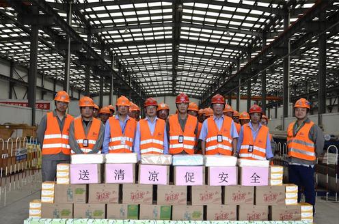 7月27日下午,中核五公司党委书记、董事长林乐忠深入海阳核电现场,开展 “送清凉、促安全”慰问活动,为酷暑中工作在一线的职工,送上防暑降温饮品、药品。