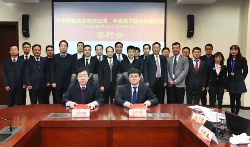 为加快搭建中核集团核技术应用新产业平台,进一步完善核技术应用核心产业布局,2018年1月16日,中国同辐股份有限公司与中国原子能科学研究院在京签署加速器产业化合作协议,巩固前阶段取得的重大进展并统一后续工作目标。中核集团党组成员、副总经理曹述栋出席见证了协议的签署并讲话。