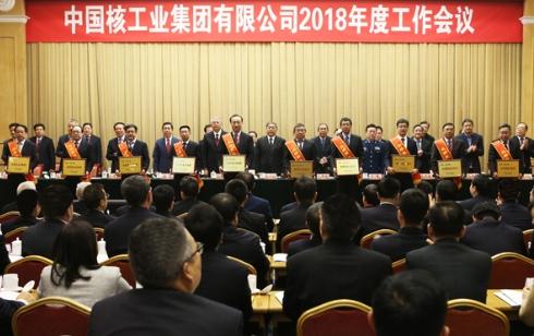 2018年1月22日~23日,中国核工业集团有限公司2018年度工作会议在京召开,深入学习宣传贯彻党的十九大、十九届二中全会精神,深入学习领会习近平新时代中国特色社会主义思想,贯彻落实中央经济工作会议精神和上级部委工作部署,总结2017年工作,明确当前和今后一个时期集团公司的任务要求,安排部署2018年工作。中核集团董事长、党组书记王寿君传达上级有关指示精神。中核集团总经理、党组副书记余剑锋作了题为《以习近平新时代中国特色社会主义思想为指导 不忘初心 牢记使命 为建设核工业强国而努力奋斗》的工作报告。中核集团党组成员、副总经理杨长利作大会总结。中核集团党组成员、副总经理俞培根、曹述栋、和自兴分别主持了大会相关环节。中核集团党组成员、纪检组组长王杰之宣读集团公司党组表彰决定。
