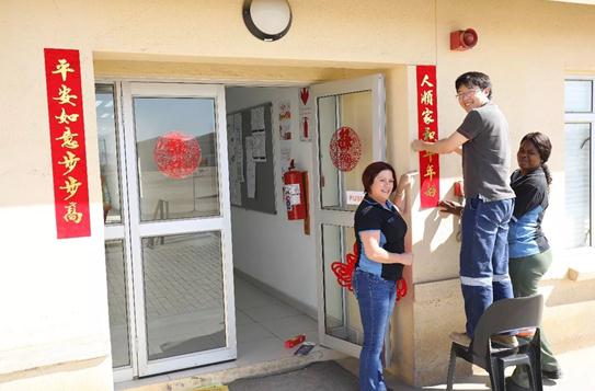 “独在异乡为异客,每逢佳节倍思亲。”虽然远离祖国和亲人,但在湖山,中方员工找到了同样的温暖,与斯科的家人共同度过了幸福、祥和的春节。2018年,中纳员工将继续奋斗在纳米比亚,以十足的干劲儿完成今年的达产目标。
