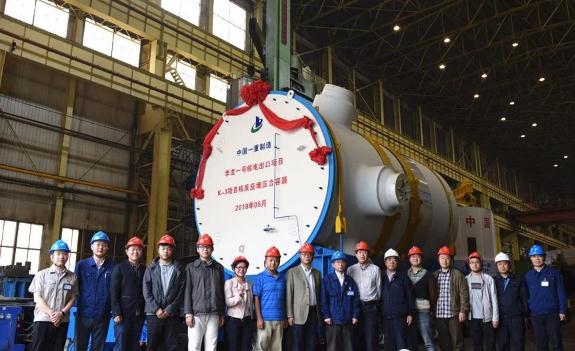 5月22日,由中核(上海)供应链管理有限公司采购、中国核动力研究设计院设计、中国一重集团有限公司承制,具有独立自主知识产权的卡拉奇3号机组,即华龙一号海外第二台机组的反应堆压力容器在中国一重集团核电石化公司顺利通过出厂验收并举行发运仪式,即将发往巴基斯坦卡拉奇核电现场。