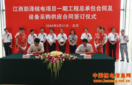 8月31日,江西彭泽核电一期工程总承包合同和设备采购供应合同签字仪式在集团公司总部举行。集团公司党组成员、副总经理丁中智、张晓鲁出席仪式。签字仪式由集团公司核电总工程师俞培根主持。