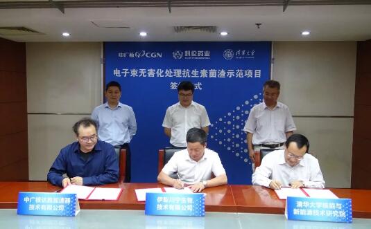 7月19日,中广核核技术发展股份有限公司(股票简称:中广核技;股票代码:000881.SZ)旗下中广核达胜加速器技术有限公司与国家环境保护抗生素菌渣无害化处理与资源化利用工程技术中心(国家生态环境部依托伊犁川宁生物技术有限公司建设)、清华大学核能与新能源技术研究院在北京签订《电子束无害化处理抗生素菌渣示范项目合作协议》。