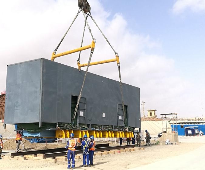 此次应急柴油发电机组卸车,是卡拉奇核电继3号机组4台主设备吊装后,又一次采用3000t吊装的大型辅助设备。整个卸车过程严格按照方案执行,经过各施工、技术人员有条不紊的通力合作,设备最终安全平稳落地。至此,K2机组两台应急柴油发电机组均已完成卸车工作,为后续K2机组应急柴油发电机安装引入奠定了坚实的基础。
