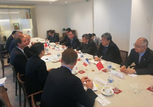 巴黎当地时间9月14日,中核集团董事长余剑锋陪同国家原子能机构主任张克俭访问法国,与法国原子能委员会主席雅克,法国核电公司高级副总裁尤萨、法马通公司总首席执行官方塔纳举行了会谈,并赴法国原子能委员会萨克莱中心参观。中法双方就中法能源政策、深入推进中法核工业多领域多层次合作等共同关心的话题交换了意见。