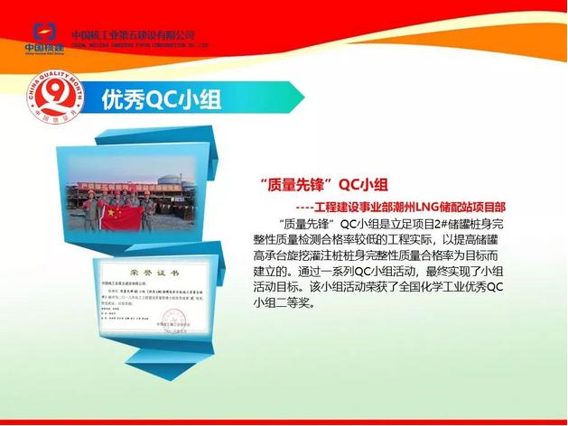 “质量先锋”QC小组是立足项目2#储罐桩身完整性质量检测合格率较低的工程实际,以提高储罐高承台旋挖灌注桩桩身完整性质量合格率为目标而建立的。通过一系列QC小组活动,最终实现了小组活动目标。该小组活动荣获了全国化学工业优秀QC小组二等奖。
