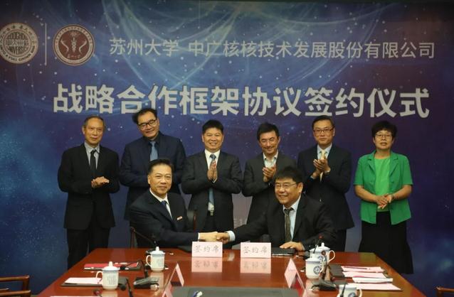 10月8日上午,中广核核技术发展股份有限公司(股票简称:中广核技;股票代码:000881.SZ)与苏州大学在苏州签订战略合作框架协议。根据协议,双方将在加速器应用产业园创建、科技应用平台搭建、人才培养及专业技能培训、核事故医学应急救援中心建设等方面建立长期全面战略合作关系。苏州大学副校长杨一心、中广核技总工程师林乃杰代表双方在协议书上签字。苏州大学校长熊思东,校党委副书记、副校长路建美,中广核技临时党委书记、总经理胡冬明,中广核达胜加速器技术有限公司总经理肖峰见证签约。