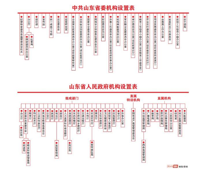 10月1日,党中央、国务院批准了《山东省机构改革方案》。10月8日,省委十一届六次全会审议通过《关于山东省省级机构改革的实施意见》,标志着我省机构改革进入全面实施阶段。昨天(10月9日)上午,省委召开省级机构改革动员大会,对全面推进改革作了安排部署。改革后,省委、省政府机构共计60个,其中省委机构18个、省政府机构42个。10月底前完成新组建部门领导班子配备、挂牌、人员转隶工作,11月底前按程序印发部门“三定”规定,12月底前完成省级机构改革。与省级机构改革相衔接,市县机构改革工作将于2019年3月底前基本完成。