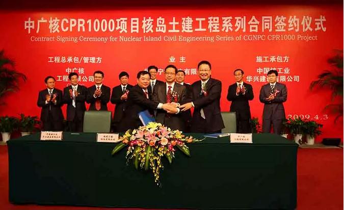 ▲2009年4月3日,中核华兴与中广核签订核电建设“8+x”50亿大单