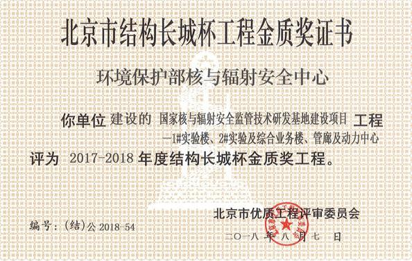 近日,国家核与辐射安全监管技术研发基地建设项目(以下简称“基地”)荣获北京市结构长城杯金质奖。结构长城杯金奖既是北京市建筑结构工程施工质量最高奖,也是建设项目最高质量创优目标中国建设工程鲁班奖核心支撑奖项。
