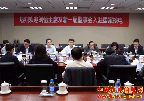 刘怡主席对“国家核电”领导班子在新一届监事会入驻前所做的各项准备工作表示感谢。他表示,“国家核电”成立时间不长,在领导班子的带领下,公司各方面工作取得了阶段性的成果。新一届监事会入驻后的重点工作是在走访调研和深入了解的基础上,进行有针对性的检查。监事会将和“国家核电”一道为保证国家人民的利益,为中央企业健康发展,维护国有资产的保值增值做出各自的贡献。