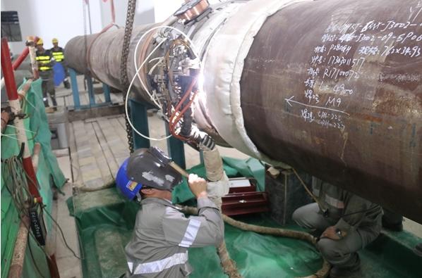 9月25日14时29分,中国核建所属中核五公司在“华龙一号”福清核电6号机组常规岛进行首次主蒸汽管道安装自动焊施工。随着首道焊口被弧光点亮,拉开了“华龙一号”常规岛管道自动焊施工的帷幕,为核电工程主蒸汽管道自动焊技术广泛应用奠定了基础。这是窄间隙自动焊技术在核电站常规岛安装工程中的首次应用,中核五公司对技术创新应用高度重视,公司党委书记、董事长徐永强现场见证。